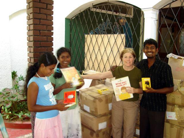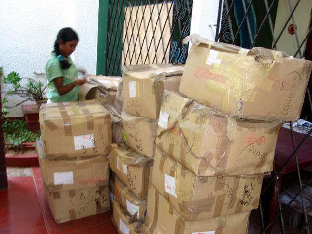 In England I launched a book appeal and received 2230 books which are in good condition. Friends and relatives have also helped to pay the shipping costs. After my arrival a trip was organized for us to claim these books at Colombo. The boxes were checked by customs. After 2 hours of waiting and following Sri Lankan procedures we were allowed to organize the delivery to the Angels home.