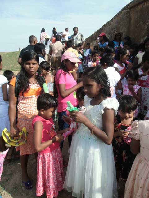 Ein Highlight der diesjährigen Ferien war für die Mädels zweifellos der Ausflug in den Süden Sri Lankas. Doch es waren nicht nur die verschiedenen Zwischenstopps und das Ziel Galle, welche den Trip so unvergesslich gemacht haben: Auch die Busfahrt muss erwähnt werden. Während viele der jüngeren Mädchen die Zeit nach dem frühen Aufstehen zum mehr oder weniger komfortablen Entspannen genutzt haben, hat es die Älteren kaum auf ihren Plätzen gehalten. Zu singhalesischer Musik wurde gesungen, getrommelt und gelacht und der enge Gang zwischen den Sitzreihen wurde auf der Rückfahrt ohne Zögern zum wilden Tanzen genutzt. Dass gelegentlich jemand beim Bremsen oder scharfen Kurven durch den halben Bus stolperte, heizte die aufgedrehte Stimmung nur noch mehr an und auch wir Praktikantinnen wurden nicht verschont und nahmen zeitweise am Spektakel teil.