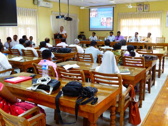die NGO-Vertreter selbst singhalesisch sprechen. So können auch Alicia und ich einiges verstehen – vorausgesetzt wir können es lesen – und das ist definitiv eine Weiterentwicklung im Vergleich zu einem Meeting vor ca. 4 oder 5 Jahren, wo fast alles auf Singhalesisch war. Etwas enttäuscht bin ich von der Eintönigkeit der Folien. Kaum jemand hat Fotos oder Farbe eingebaut, es geht nur um die reine Faktenvermittlung. Außerdem weist einer der Leiter der Veranstaltung bereits nach wenigen Vorträgen darauf hin, dass es doch schön wäre, wenn die weiteren NGO´s nicht nur darüber berichten würden, was sie schon alles gemacht haben, sondern auch darüber, was sie für die Zukunft planen. Was mir persönlich auch ein bisschen fehlt, sind Angaben zu ein- und ausgegangenen Geldern, worüber neben uns lediglich World Vision mit seinen 4 Zweigstellen im Distrikt Puttalam berichtet.