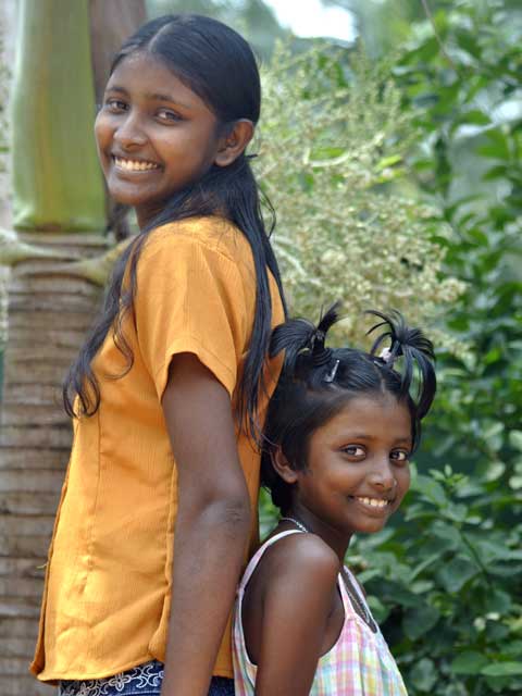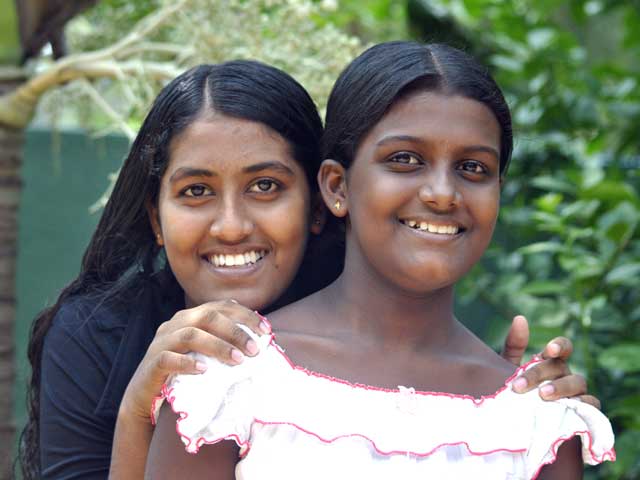Diese beiden Hühner haben die Gabe, in jeder beliebigen Situation und zu jeder Tageszeit in schallendes Gegacker… ähm… Gekicher auszubrechen. Den Grund für ihre Albernheit kennen Dinushika (13 Jahre) und ihre große Schwester Dananjani (16 Jahre) manchmal vermutlich selbst nicht, aber so lange es etwas zu lachen gibt, ist das doch eigentlich auch egal.