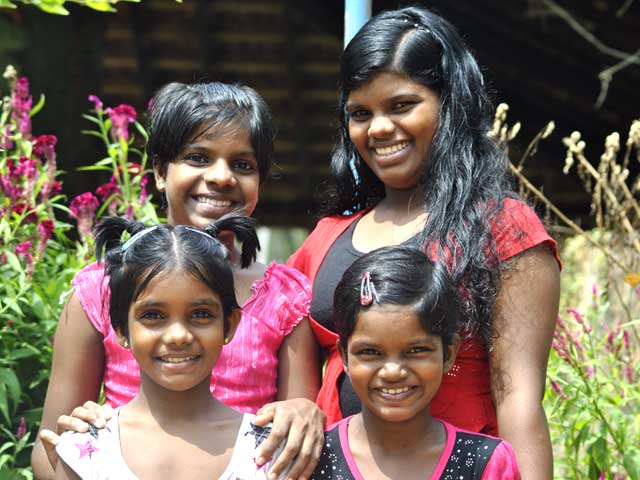 Dieses Vierergespann würde ich als liebste, ruhigste und unkomplizierteste Geschwistergruppe bezeichnen. Die kleine Nethmi (7 Jahre) wird liebevoll von ihren 3 großen Schwestern Madushika (10 Jahre), Maduwanthi (11 Jahre) und Subashini (14 Jahre) umsorgt und auch diese Drei haben eine liebevolle Schwesternbeziehung zueinander. Die vier Mädchen sind sich sehr ähnlich und vor allem bei den drei Jüngeren blicken wir hoffnungsvoll einer erfolgreichen Schullaufbahn entgegen.