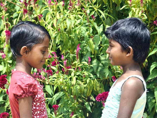 Auch wenn man auf den ersten Blick vielleicht nicht gleich merkt, dass unser Nesthäkchen Bodika mit ihren 6 Jahren die kleine Schwester der 9-jährigen Padmini ist, so ist man sich spätestens dann sicher, wenn man die Beiden eine Weile beim Spielen beobachtet hat. Jeder Zirkusclown und jeder Komiker kann sich eine Scheibe von ihren Mimiken und Gestiken abschneiden, mit denen sie uns alle regelmäßig zum Lachen bringen.
