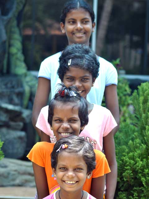 Wenn es irgendwo einen Streit gibt, dann liegt die Wahrscheinlichkeit bei 70-80%, dass einer von diesen 4 Rabauken involviert ist. Asitha (9 Jahre), Sashini (10 Jahre), Shashikala (13 Jahre) und Ayesha (17 Jahre) haben recht früh gelernt sich durchzusetzen, auch wenn sie dabei manchmal im Unrecht sind. Häufig streiten sie auch untereinander, aber wenn es hart auf hart kommt, halten sie zusammen und lassen die anderen ihre starke geschwisterliche Beziehung spüren, die sie miteinander verbindet.