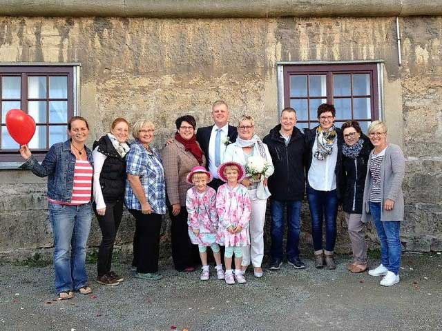 Doch zunächst stand am Donnerstagvormittag die standesamtliche Trauung von meinen Freunden auf dem Plan, nach der wir die Beiden draußen empfangen und beglückwünscht haben. Am Abend fand dann der feuchtfröhliche Polterabend statt, bei dem sich abermals fast das ganze Dorf versammelte, um mit den Beiden zu feiern. Auch ich habe viele alte Bekannte wiedergetroffen und sogar meine Eltern haben bis weit nach Mitternacht mit uns gefeiert und getanzt wie die Wilden…