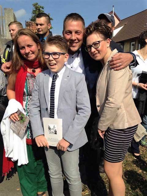 Am nächsten Tag war dann also die kirchliche Trauung von Marcel und Elfi, zu der sich alle Hochzeitsgäste so richtig in Schale geworfen und das Brautpaar zu Hause abgeholt haben. Gemeinsam liefen wir dann auf dem mit Tannen-Reisig gestreuten Weg zur Kirche, wo die Beiden sich unter vielen Freudentränen (auch meinerseits) und mit einer tollen musikalischen Begleitung das Ja-Wort gaben. Im Anschluss ging´s mit einer LKW-Kolonne, wie sich das für den Speditions-Sohnemann Marcel gehört, in eine ca. 20 km entfernte Gaststätte, wo die Hochzeitsfeier stattfand. Auch wenn ich da erst etwas später hinzugestoßen bin, hatten wir einen super schönen Abend mit leckerem Buffet und einem so ausgeglichenen und glücklichen Brautpaar, wie man es bei solch riesigen Familienfesten wohl eher selten erlebt.