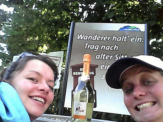 Nach einem entspannten Sonntag, an dem ich mich erst einmal von dem ganzen Freizeitstress der letzten Tage erholt hatte, startete meine letzte Woche in der Heimat. Wahnsinn, wie schnell die Zeit verflogen war! Um noch ein bisschen runterzukommen und mir einen lang gehegten Wunsch zu erfüllen, hatte ich von Montag bis Donnerstag noch etwas ganz Besonderes geplant. Mit meiner sehr guten Freundin Tini machte ich mich auf den Weg zum Rennsteig, einen ca. 170 km langen Wanderweg durch den Thüringer Wald, das Thüringer Schiefergebirge und den Frankenwald. Los ging es in Hörschel bei Eisenach, wo wir nach altem Brauch einen Stein aus dem Fluss Werra mit auf unsere Wanderung nahmen.
