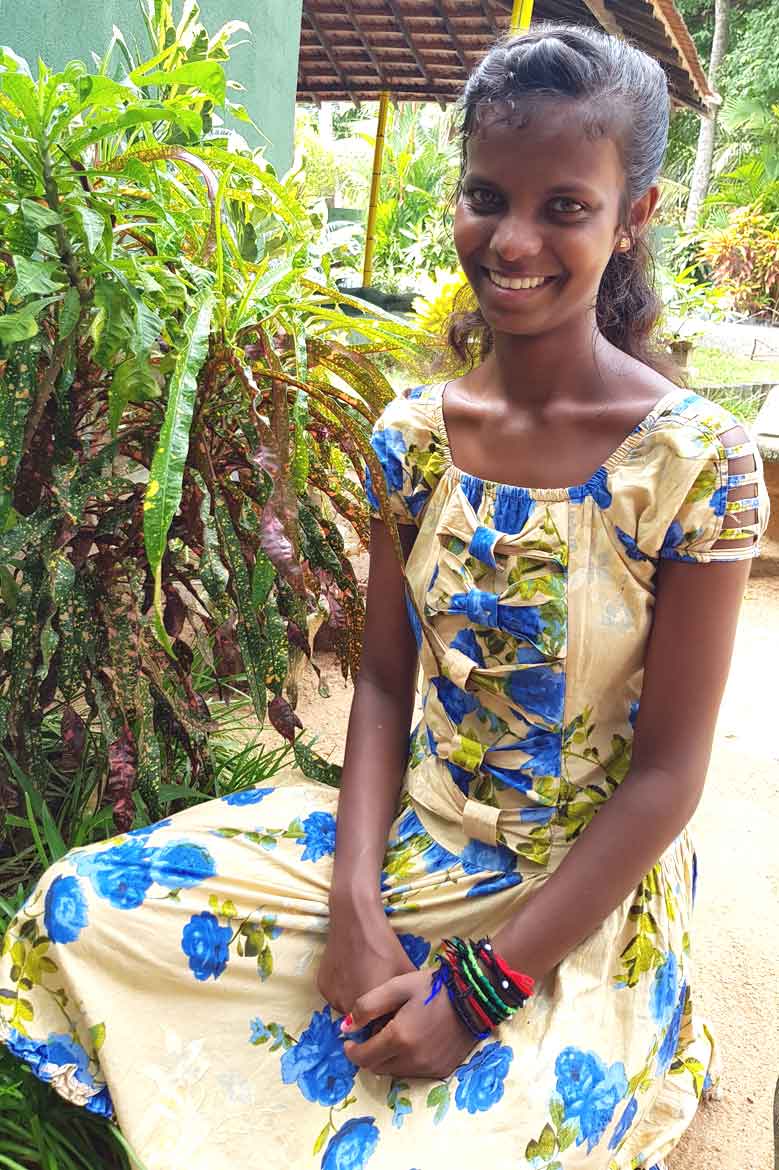 Erst seit wenigen Tagen besucht Madushika die Schule, weiß aber schon jetzt, dass ihr Lieblingsfach Sinhala ist. Außerdem singt sie unglaublich gerne und so hört man sie auch ab und zu ein Lied vor sich hin trällern. Nur das Vorsingen ist ihr noch nicht ganz behaglich, wobei sie vor lauter Aufregung das Luftholen vergisst. Glücklicherweise haben wir schnell eine nette Patenfamilie für Madushika gefunden.