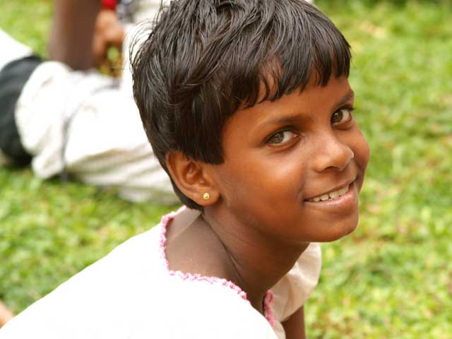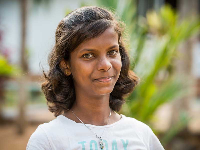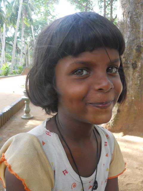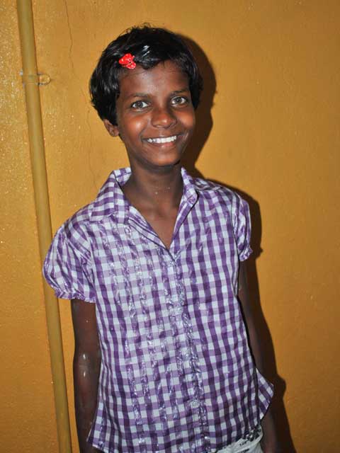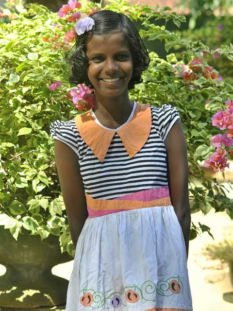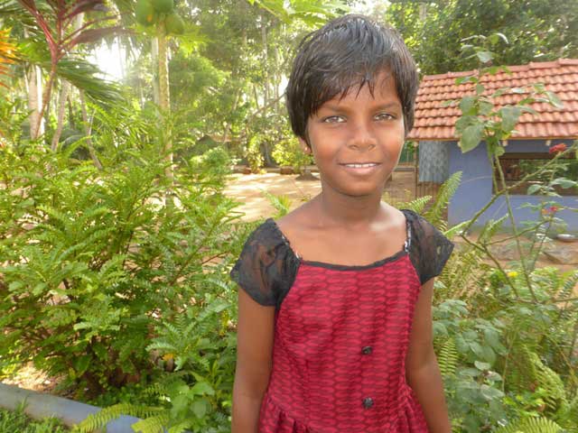 Madushika hat ebenso durchdringende Augen wie ihre Schwester. Zum Zeitpunkt ihrer Aufnahme war sie noch sehr zurückhaltend und sprach nur wenig, doch mittlerweile ist sie schon gut aufgetaut und hat Anschluss zu den anderen Mädchen im Heim gefunden. Auffallend häufig sucht sie den Körperkontakt zum Personal oder zu Praktikantinnen.