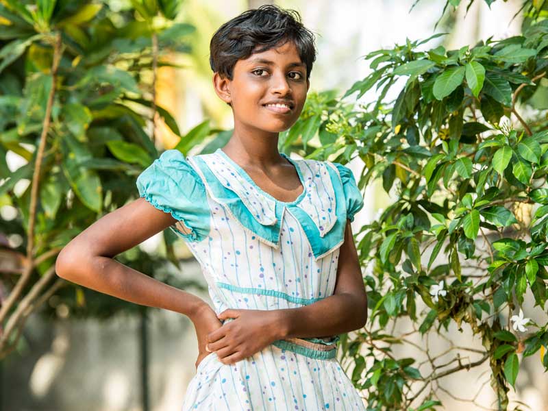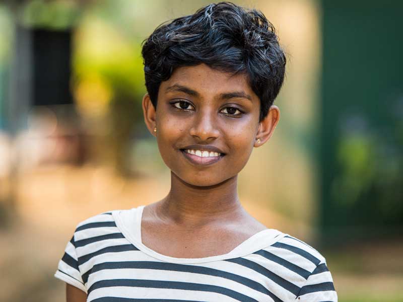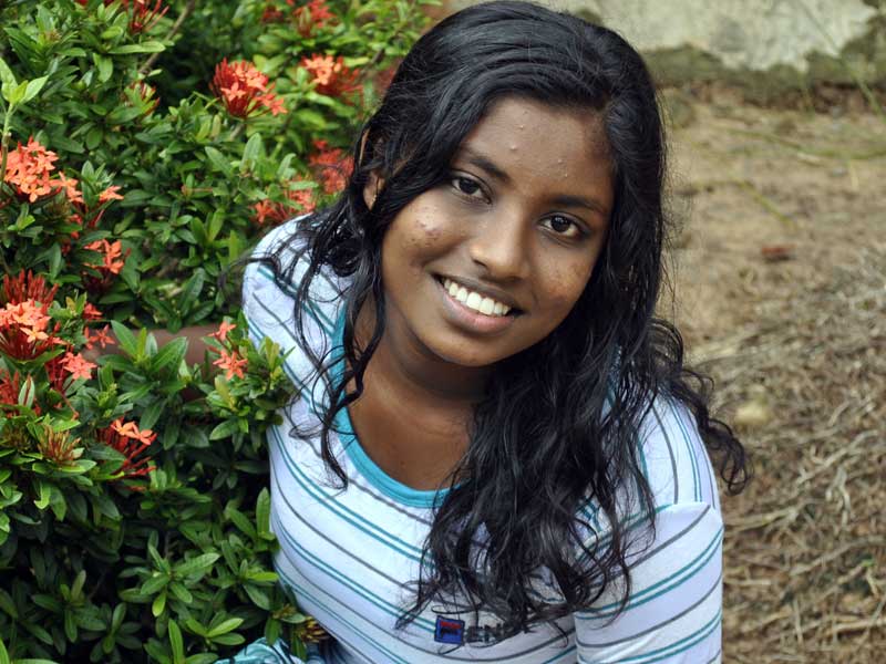Die fast 14-jährige Tharushika hat sich im vergangenen Jahr körperlich ziemlich stark verändert. Bei einer Größe von 1,45 m und einem Gewicht von 32 kg weist die Teenagerin mittlerweile einige weibliche Züge auf und auch in ihrem Gesicht kann man nachvollziehen, dass die Pubertät in vollem Gange ist, denn dort zeigt sich nun hin und wieder mal ein Pickel, natürlich sehr zu ihrem eigenen Leidwesen. Tharushi kann nämlich sehr eitel sein, wenn es um ihr Äußeres geht und wird damit auch gerne mal von den anderen Mädchen geneckt.