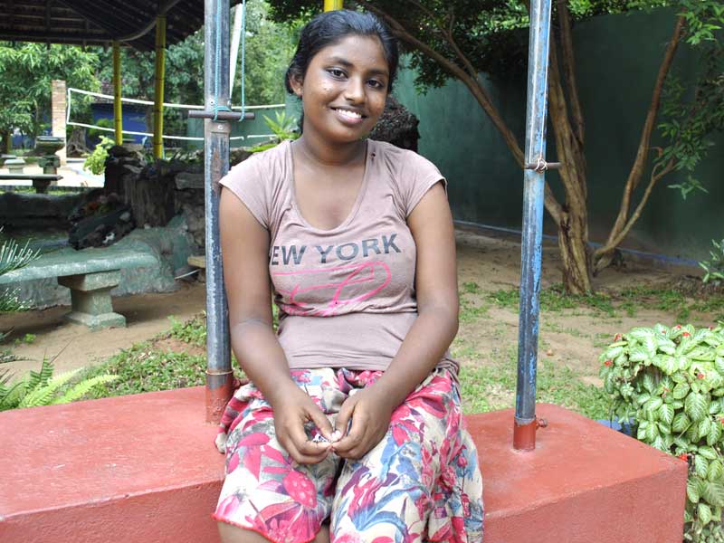 Häufig schaut Tharushi etwas ernst drein und scheint nachdenklich zu sein. Hat man jedoch Blickkontakt mit ihr, zeigt sich ihr wunderschönes Lächeln und sie kichert leise vor sich hin. Tharushika ist in der Zwischenzeit gut in die Gemeinschaft des Angels Home integriert und geht ihren Pflichten zuverlässig nach. Ihr Kleiderschrank ist stets ordentlich und auch an ihrer Körperhygiene und dem Wäschewaschen ist nichts zu beanstanden. Besonders fleißig ist Tharushika bei der täglichen Gartenarbeit.