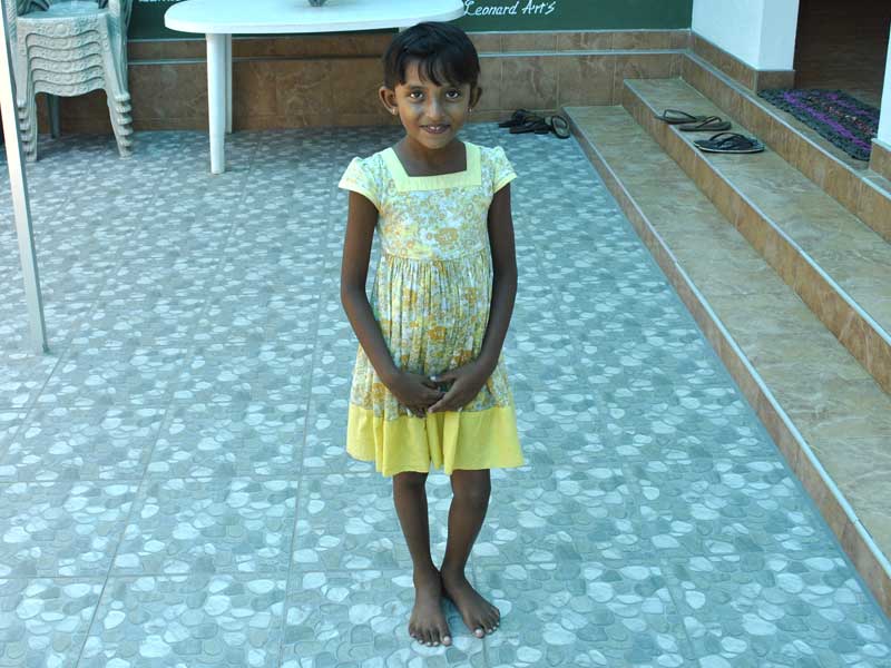 Zum Zeitpunkt dieses Interviews hat Dulanjalee noch nicht sehr lange in unserem Angels Home for Children gelebt, weshalb es mir schwerfällt, viel über ihre Entwicklung zu schreiben. Sie ist ein freundliches und aufgeschlossenes Kind, das sich gut bei uns eingelebt und Freundinnen gefunden hat. Sie ist 7 Jahre alt und wiegt 20 kg bei einer Größe von 1,40 m. Damit ist sie für ihr Alter schon relativ groß, aber sonst körperlich völlig normal entwickelt.