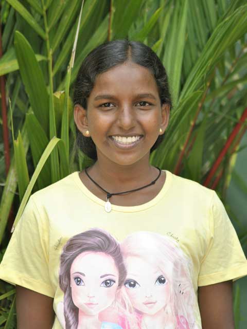 L.A. Sanduni lebt nun seit dem 09.02.2016 im Angels Home in Marawila, gemeinsam mit den anderen Engeln. Sandunis Alter wird auf 13 Jahre geschätzt, da sie keine Geburtsurkunde besitzt. Das Mädchen ist in Puttalam aufgewachsen und besucht in der Schule die 6. Klasse. Ihre Familie lebt in sehr armen Verhältnissen, da der Vater vor elf Jahren verstarb. Außerdem hat Sanduni noch neun weitere Geschwister und die Mutter ist für den Haushalt der elfköpfigen Familie zuständig. Sanduni hatte einen sehr weiten Schulweg, bevor sie ins Angels Home zog. Das Mädchen hat eine Lernschwäche, die gering ausgeprägt ist. Wir denken jedoch, dass diese sie nicht allzu sehr in ihrem Alltag beeinträchtigen wird und sie ihren Weg im Angels Home, in der Schule sowie mit den anderen Mädchen gut meistern wird.