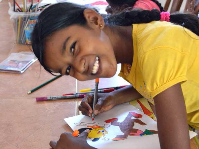 Nimeshika ist ein richtiger Sonnenschein und hat sich bereits sehr gut in ihrem neuen Zuhause eingelebt. Dank ihrer offenen, fröhlichen Art fand sie schnell Anschluss unter den Mädchen, malt und puzzelt gerne und hat dabei immer ein breites Lächeln auf den Lippen. Derzeit hat sie ein wenig mit Heimweh zu kämpfen, was sich aber hoffentlich schnell legen wird, zumal ihre Freundinnen Sanduni und Nisansala ebenfalls im Angels Home leben und ihr zur Seite stehen.