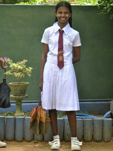Die Älteste des vierköpfigen Geschwister-Klans ist eine große Schwester wie sie im Buche steht. Pflichtbewusst und anteilnehmend schaut sie hier nicht nur stets auf ihre jüngere Schwester Nethmi, sondern übernimmt auch all die hier anfallenden Pflichten und Aufgaben vorbildhaft. Abends und morgens sieht man sie oft an ihrem und Nethmis gemeinsamen Schrank stehend, fein säuberlich wird die Wäsche gefaltet und gecheckt, dass auch wirklich alles beisammen liegt. Fürsorglich kämmt sie Nethmis Haar und klippst es mit hübschen Spangen aus ihrem Gesicht. Mittlerweile gut in den Heimalltag integriert, weiß sie immer, was zu tun ist, bewegt sich äußerst selbstständig, ohne jemals für Probleme oder Aufsehen zu sorgen.