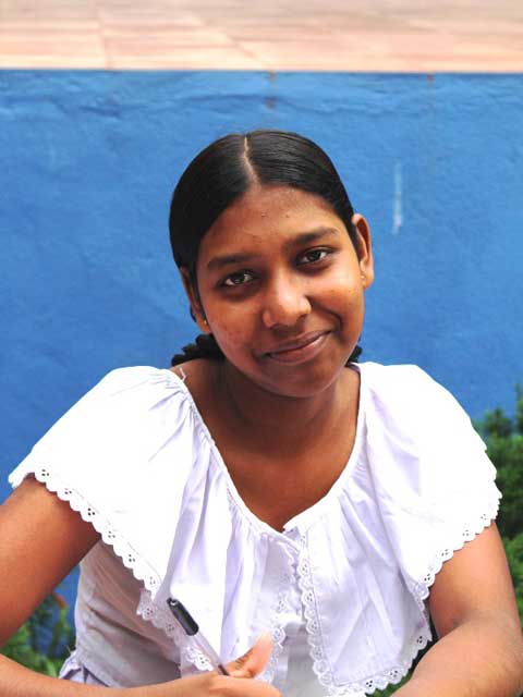 Pabodani besucht nun gemeinsam mit 6 anderen unserer Mädchen die Abschlussklasse der nahegelegenen Schule in Mudukatuwa und wird dort im Dezember die Prüfungen für das sogenannte O-Level (in etwa vergleichbar mit dem deutschen Realschulabschluss) schreiben. Leider muss man jedoch sagen, dass sie vielen anderen Dingen wesentlich mehr Aufmerksamkeit schenkt, als ihren Lerninhalten, weshalb sich ihre Leistungen in den letzten 2 Jahren ziemlich verschlechtert haben. Dies ist umso mehr bedauerlich, wenn man weiß, dass eigentlich viel mehr in der selbstbewussten Teenagerin steckt. So waren ihre Noten vor 2-3 Jahren noch erheblich besser, da sie sich besser auf die Schule konzentriert hat. Natürlich wird der Stoff mit zunehmender Klassenstufe auch schwieriger, aber wir sind alle einheitlich der Meinung, dass Pabodani ihren Abschluss durchaus schaffen könnte, wenn sie sich nur richtig anstrengen würde. Viel zu leicht lässt sie sich von den anderen älteren Mädchen mit Neuigkeiten über Bollywood-Stars oder die hübschesten Jungs aus der Schule ablenken. Derzeit versuchen wir noch einmal gezielt mit unserer psychologischen Beraterin auf sie einzugehen, damit sie sich in den letzten Monaten zusammenreißt. Bleibt nur zu hoffen, dass sie die Bedeutung eines Schulabschlusses noch erkennt und daraufhin arbeitet.