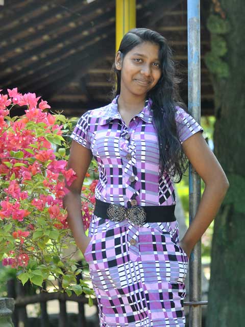 Die 14-jährige Pabodani gehört seit etwas mehr als einem halben Jahr zu unseren Engeln. Mit einer Größe von 1,55 m und einem Gewicht von 50 kg ist sie für ihr Alter recht weit entwickelt und wirkt schon eher wie eine junge Frau.