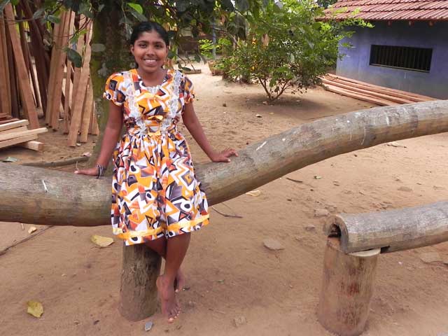 Nishadika ist 15 Jahre alt und besucht zurzeit die 10. Klasse der öffentlichen Schule in Mudukatuwa. Sie ist ein ruhiges, aber sehr freundliches und hilfsbereites Mädchen. Sie lacht und spielt gerne, was aber leider oft dazu führt, dass sie das Spielen dem Lernen vorzieht. Sie ist daher manchmal etwas faul in der Schule und das lässt sich leider auch an den schulischen Resultaten erkennen. In den letzten Examen bewegten sich ihre Leistungen im Durchschnitt bei allen Fächern im unteren Drittel des Punktebereichs. Da Nishadika bereits Ende nächsten Jahres die Abschlussprüfungen für das sogenannte O-Level (in etwa vergleichbar mit der Mittleren Reife) ablegen wird, machen wir uns etwas Sorgen, ob diesen Abschluss überhaupt schaffen wird. Falls nicht, dann wird Nishadika wohl eines der ersten unserer Mädchen, die in den Genuss der neuen Ausbildungsstätte kommen werden, welche momentan auf dem Nachbargrundstück des Angels Home entsteht.