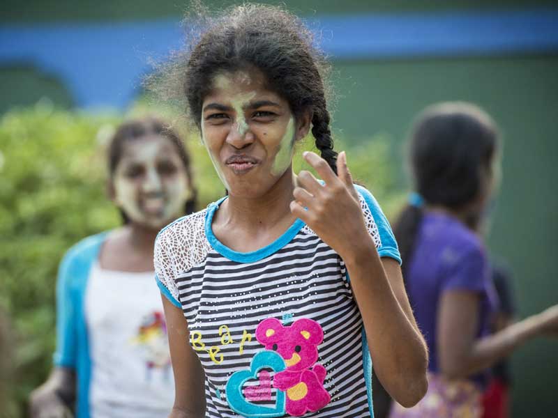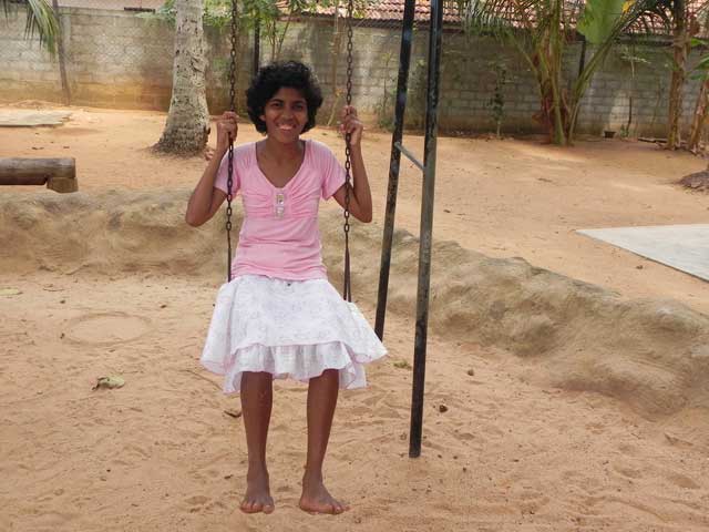 Während über 50 Mädchen in der Spielzeit um 17 Uhr nachmittags im Garten herumhüpfen und tollen, macht es sich die ruhige Dilini nach wie vor lieber in der Küche bequem und liest in aller Ruhe die aktuelle Tageszeitung. Dass das sanfte Mädchen von sich aus die Stille sucht und sich in dem oft sehr lauten Heimalltag nicht ganz zuhause fühlt, kann man ein wenig nachvollziehen. Wenn sie aufgefordert oder gefragt wird, ob sie nicht bei einem Spiel teilnehmen möchte, reagiert sie meist mit einem schüchternen „No.“ und wendet sich wieder ihrer Lektüre zu. Es war vor allem in der Schulzeit schwer mit dem großen, hageren Mädchen in Kontakt zu treten, doch in den Ferien hat sich Dilini immer öfter an Gruppenunternehmungen beteiligt und wollte im Children’s Park von sich aus für einige Fotos posieren. Besonders in der kleineren Feriengruppe mit etwas weniger Lärm schien sich die 17-Jährige wohler zu fühlen und man sah sie in dieser Zeit immer häufiger lächeln oder hörte sie einen Gruß erwidern.