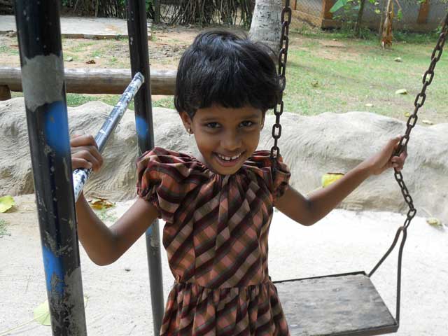 Kalpeni ist ein Kind, mit dem man jede Menge Spaß hat und das einen immer wieder zum Lachen bringt. Bei gemeinschaftlichen Aktivitäten ist sie meistens eine der ersten, die teilnehmen möchte. Bei den anderen Kindern ist sie beliebt und am liebsten spielt sie draußen mit den gleichaltrigen oder jüngeren Mädchen, springt Seilchen oder backt Sandkuchen. Es fällt ihr leicht, zu den Praktikantinnen Kontakt aufzubauen und auch hier zeigt sich, dass sie eigentlich schon verhältnismäßig viel Englisch verstehen und sprechen kann. Zwar spricht sie selten in ganzen Sätzen oder grammatikalisch korrekt, aber Übung macht ja bekanntlich den Meister. Und wenn sie etwas gar nicht versteht, macht sie dies durch ein lautes „Hä?!“ deutlich und schaut einen mit großen Augen fragend an. Für ihre Schullaufbahn ist es sicherlich sehr förderlich, dass sie im Angels Home in ihrer Freizeit viel Kontakt zur englischen Sprache hat und diese spielerisch und vor allem freiwillig erlernt …