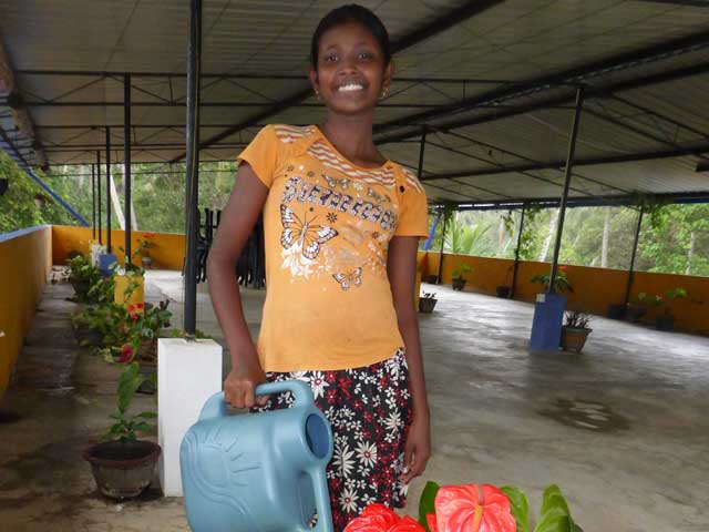 Sie verbringt viel Zeit mit Thilini und Chanchala, aber auch mit den anderen älteren Mädchen aus dem Angels Home und natürlich mit ihrer kleinen Schwester Salani.