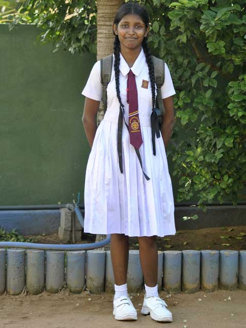 Sawani geht gemeinsam mit den meisten Kindern auf die nahegelegene öffentliche Schule in Marawila und besucht dort mit Sadisha und Thilini die 6. Klasse.