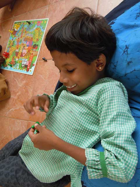 Subani ist ein Mädchen für sich – im wahrsten Sinne des Wortes. Nur gelegentlich sieht man die mittlerweile 13-Jährige so richtig mit anderen Mädchen spielen, denn viel lieber ist sie für sich allein oder durchgehend bei den Praktikantinnen. Mit ihrer Sprachbegabung und ihren Deutschkenntnissen beeindruckt sie neue Praktikantinnen schon am ersten Tag und begleitet diese über die gesamte Praktikumszeit mit pfiffigen Ausdrücken und ihrer Quasselei. Subani hat nämlich immer etwas zu erzählen. Manchmal bekommt man jedoch den Eindruck, dass sie die Praktikantinnen für sich beanspruchen möchte und behindert diese damit in den Möglichkeiten, mit anderen Kindern zu spielen, sofern man dies nicht unterbindet. Meistens setzt sie sich dann aber einfach dazu und spielt das Spiel mit, das die Praktikantinnen gerade mit anderen Kindern spielen. Auf diese Weise kommt sie dann auch unter andere Mädchen.