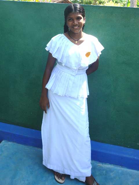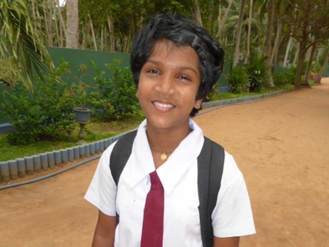Vihanga besucht zurzeit gemeinsam mit 6 weiteren Mädchen die 6. Klasse der nahegelegenen Schule in Mudukatuwa. Die Schule und das Lernen machen ihr sehr viel Spaß, am meisten die Mathematikstunden. Mathematiklehrerin will sie jedoch keine werden, ihr Traumberuf ist Ärztin. Ob in Sri Lanka oder im Ausland, das weiß sie noch nicht, aber sie möchte auf jeden Fall einmal nach Saudi Arabien fliegen.