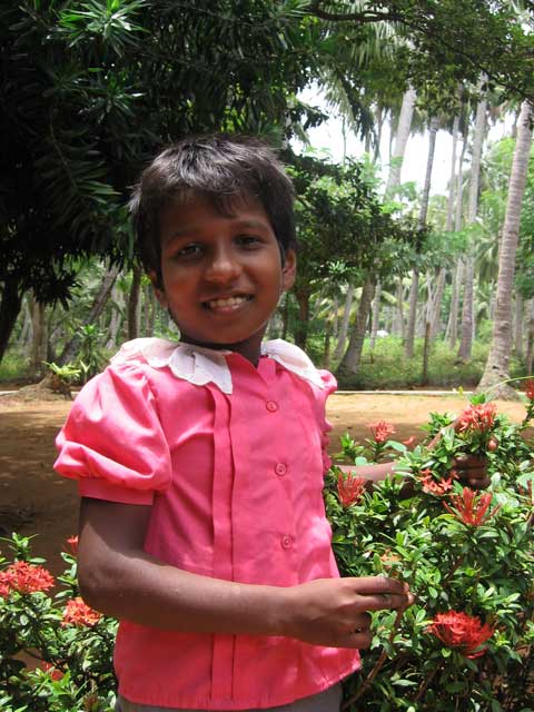Zu ihren Lieblingsarbeiten im Heim gehört die Gartenarbeit, insbesondere dann, wenn neue Blumen gekauft werden, die man schön einpflanzen kann. Auch ihre anderen Aufgaben erledigt sie relativ pflichtbewusst und es ist wirklich nett dabei zu zuschauen wie die kleine Hasini den Hof mit einem Besen kehrt, der sie ein ganzes Stück überragt.
