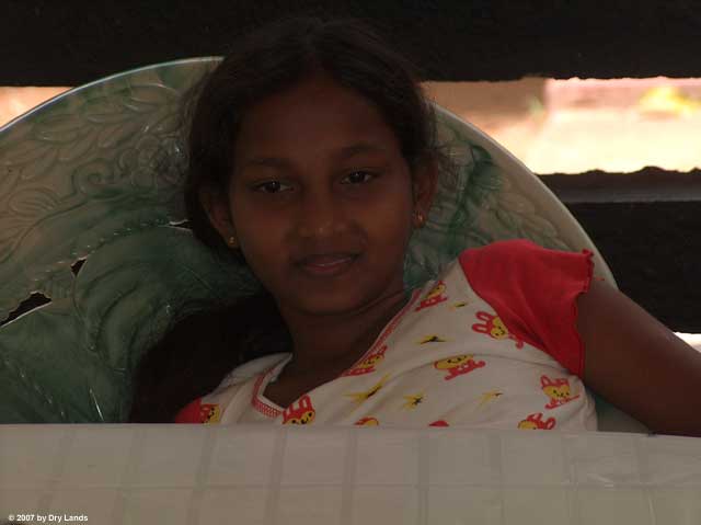 Dinesha Bandare wurde am 21.08.1995 in Kurunagala geboren. Sie ist Buddhistin und wird ab September 2007 in Marawila zur Schule gehen. Die Eltern von Dinesha sind geschieden. Der Vater hat wieder geheiratet. Seine neue Frau hat 4 Kinder und will Dinesha nicht aufnehmen. Der Vater hat keinerlei Interesse an Dinesha und auch kein Geld, um sie zu versorgen. Wenn ich so etwas höre, verändert sich sofort meine Gesichtsfarbe. Für seine neue Frau mit den 4 Kindern hat er genügend Geld, um sie zu versorgen, aber nicht für sein eigenes Kind!