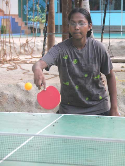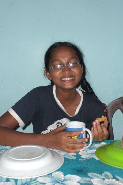 Bei den anderen Mädchen ist Dinesha sehr beliebt und man sieht immer wieder, wie sich die Älteren freundschaftlich untereinander necken, oder aber auch gelegentlich in ernsthafte Gespräche vertieft sind. Jedoch hat sie auch einen sehr guten Draht zu den kleineren Heimbewohnern und sie hat uns gegenüber das Spielen mit den jüngeren Kindern sogar als eines ihrer Hobbys genannt.