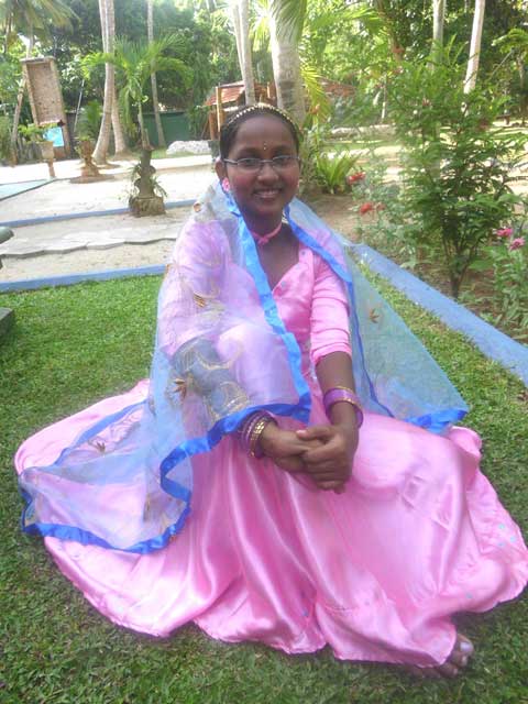Noch immer ist Dinesha eine sehr anmutige und graziöse junge Frau, die genau weiß, wie sie ihren weiblichen Charme und Humor einsetzen muss, um bestimmte Ziele zu erreichen. Ihr schauspielerisches Talent und ihre Cleverness helfen ihr dabei genauso gut wie ihr bezauberndes Lächeln. Schon recht früh hat Dinesha bei uns gelernt, dass man mit einer gewissen Portion Spaß und Diplomatie meist weiter kommt als mit befangener Schüchternheit. Trotzdem zeigt sie dabei stets Respekt gegenüber Erwachsenen und weiß einfach, was sich gehört. Nicht umsonst gehört sie beim Personal zu den „Lieblingskindern“ und wird auch meist ins Büro geschickt, wenn es darum geht, bei Frank und mir eine besondere Erlaubnis einzuholen. Ihr verhandlungssicheres Englisch und ihr Verantwortungsbewusstsein tragen außerdem dazu bei, dass sie diese dann meistens auch bekommt.