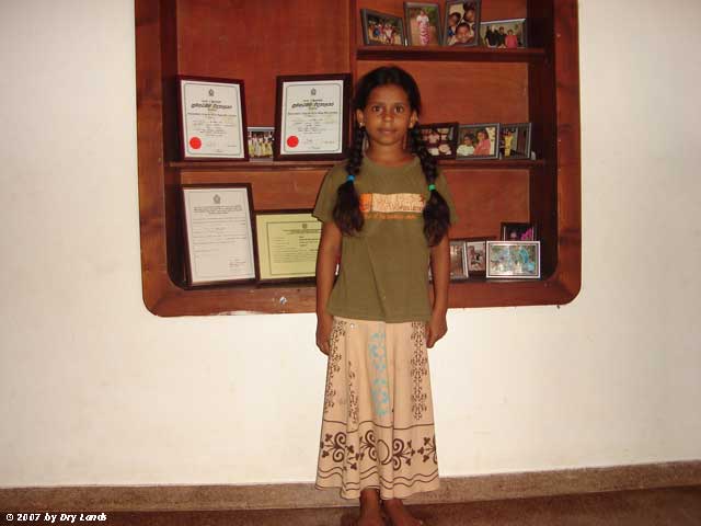 Jeeva Sivakumar ist am 21.01.1996 in Chilaw geboren. Sie besuchte nur unregelmäßig die Schule, da kaum Gelder dafür zur Verfügung standen. Über den Vater wissen wir nur, dass er vor 2 Jahren das Land verlassen hat. Seitdem versucht die Mutter, sich mit Arbeiten auf dem Wochenmarkt über Wasser zu halten. Jeeva lebt seit dem 22.04.2007 im Angels Home.