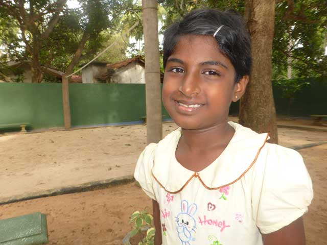 Im September wird Asadi 8 Jahre alt und sie besucht nach wie vor gemeinsam mit den meisten anderen Kindern die nahegelegene örtliche Schule von Mudukatuwa. Dort geht sie zusammen mit Hasini in die 3. Klasse. Gerne hätten wir Asadi zu Beginn des Schuljahres im Januar auch auf die katholische Mädchenschule geschickt, die einige unserer Kinder jetzt besuchen. Leider ließen die Kapazitäten der unteren Klassenstufen dies jedoch nicht zu und so werden wir es im kommenden Jahr erneut versuchen. Der Schulwechsel würde Asadi mit Sicherheit gut tun, da sie normalerweise ein recht cleveres Mädchen ist, was aber häufig zu faul und unkonzentriert arbeitet. In der anderen Schule herrscht mehr Diziplin, wodurch Asadi in Zukunft bestimmt mehr aus sich herausholen könnte.