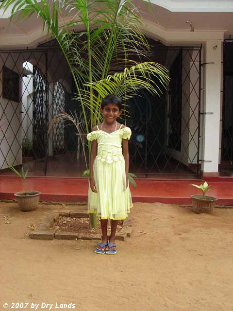Hiruni (vollständiger Name: Warnaknlasuriya Hiruni Thaleshila Fernando) wurde am 15.06.1999 in Puttalam geboren. Sie ist 7 Jahre alt und wird ab dem 02.01.2007 in Marawila die Schule besuchen. Sie kommt nun in die 3. Klasse. Leider spricht sie noch kein Englisch, da sie vorher nur unregelmäßig zur Schule ging. Auf die Frage hin, was sie später mal machen möchte, sagte Hiruni spontan: "hier arbeiten" (im Angels Home)