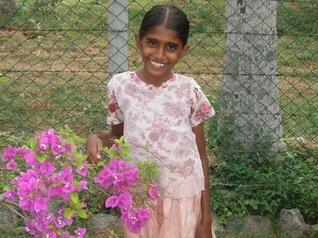 Hiruni kam Ende 2006 gemeinsam mit ihrer älteren Schwester Saduni zu uns ins Angels Home, da die Mutter der beiden Mädchen im jungen Alter von 36 Jahren an Krebs gestorben ist. Als wir die beiden damals aufgenommen hatten, sagte man uns, der Vater sei nach dem Tod seiner Frau verschwunden und man könnte ihn nicht auffinden. Etwas später stellte sich heraus, dass er damals einen Job im Ausland angenommen hat und seine beiden Töchter deshalb zu seiner Schwester gegeben hat. Da diese sich aufgrund zweier eigener Kinder sowohl zeitlich als auch finanziell nicht angemessen um die Mädchen kümmern konnte, wurden sie schließlich zu uns gebracht. Nichtsdestotrotz ist die Tante bis heute unsere Hauptansprechpartnerin geblieben und auch verantwortlich für die Zukunft ihrer beiden Nichten. Saduni hat sie bereits im Februar 2011 zu sich genommen, nachdem diese volljährig geworden ist. Mit kleineren Nebenjobs muss die Ältere zum Familienunterhalt beitragen bis sie irgendwann selbst heiraten und eine eigene Familie gründen wird. Bei Hiruni wird dies noch einige Jahre dauern und so lange soll sie auf jeden Fall bei uns im Angels Home bleiben, um verschiedene Ausbildungsangebote wahrzunehmen und auf eine berufliche Zukunft hinzuarbeiten. Die Ferien verbringt Hiruni nach wie vor bei ihrer Tante, wo sie dann gemeinsam mit ihrer älteren Schwester und ihren Cousinen und auch ihrer Großmutter väterlicherseits eine tolle Zeit erlebt. Auch die Besuchstage werden von Hirunis Verwandten fast immer wahr genommen, was für sie selbst natürlich unheimlich wichtig und wertvoll ist. Es ist jedes Mal schön anzusehen, wenn die große Schwester (mittlerweile eine junge Dame) Saduni ins Angels Home kommt, um Hiruni einen Besuch abzustatten. Natürlich wird sie dann auch von den anderen älteren Mädchen im Angels Home umlagert, die früher ihre engsten Freundinnen waren und nun natürlich gespannt sind auf Sadunis Geschichten vom Leben außerhalb des Kinderheims. Hiruni hingegen interessiert das alles herzlich wenig. Sie ist froh, ihre Kindheit im Angels Home noch ein wenig genießen zu können und macht sich noch nicht allzu viele Gedanken um ihre Zukunft.