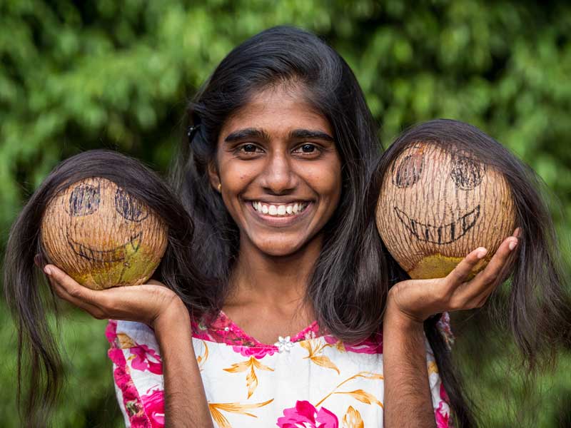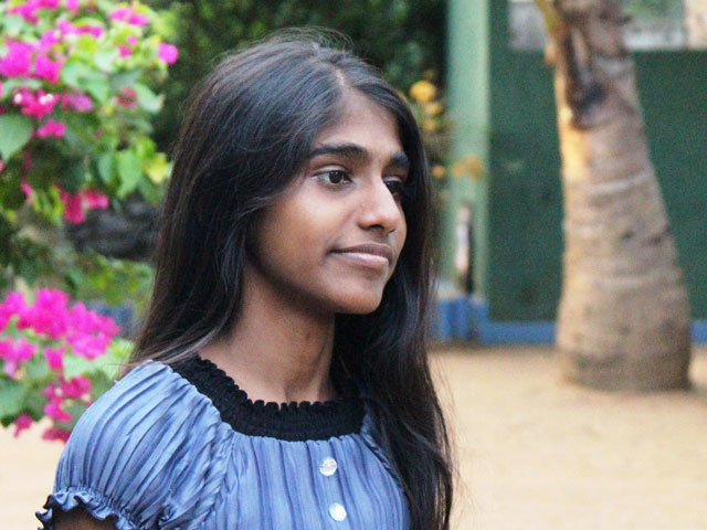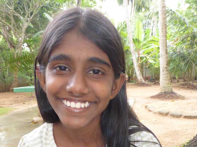 Hiruni: Englisch, Mathe und Singhalesisch sind meine Lieblingsfächer in der Schule. Die Freizeit ist das schönste im Heim.