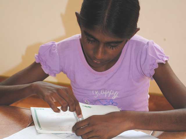 Trotz ihres Ehrgeizes lässt sich die stets ausgeglichene Hiruni aber von ihrem Problemfach Tamil nicht aus der Ruhe bringen. Sie erklärte mir, dass sie an der alten Schule in erster Linie die einzelnen Wörter gelernt hätte. Nun muss sie aber teilweise ganze Aufsätze schreiben und das Niveau sei somit ein ganz anderes. Verständlicherweise hat sie Probleme, diese Aufgabe zur Zufriedenheit der Lehrerin zu erfüllen. Hiruni nimmt es jedoch mit Humor und konzentriert sich lieber auf Fächer wie Englisch, Mathematik oder Singhalesisch, in denen sie bisher recht gute Ergebnisse erzielte.