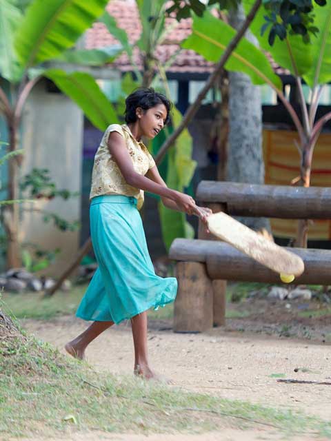 Shakina gehört irgendwie noch nicht ganz zu den großen, aber auch nicht mehr richtig zu den kleinen Mädchen. Wenn es ums Tanzen geht, kann sie es sehr wohl schon mit einer Chanchala oder Surangika aufnehmen, in anderen Bereichen genießt sie es jedoch, noch voll und ganz Kind sein zu dürfen.