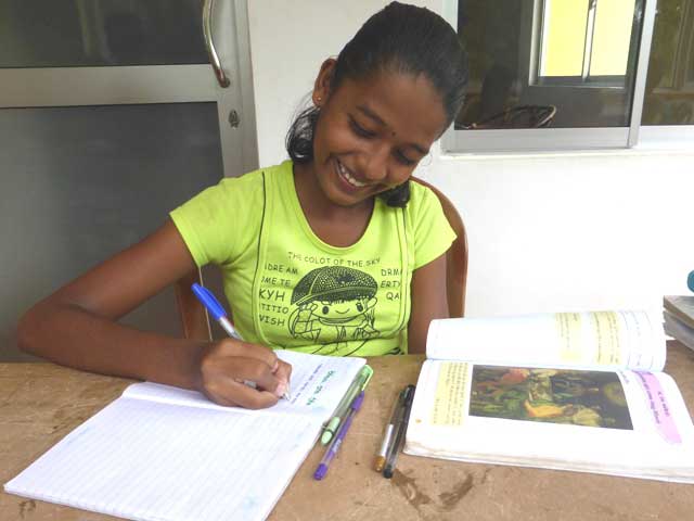 Shakinas Lieblingsfach ist Singhalesisch. Sie kann auch schon das ABC in englischen Großbuchstaben fehlerfrei schreiben und hat Spaß am Lernen. Wenn sie einmal groß ist, möchte sie gerne Singhalesisch-Lehrerin werden.