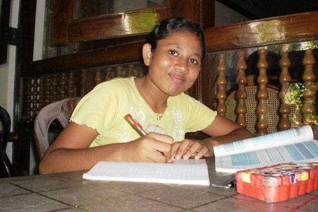 Dilkis Fleiß hingegen lässt leider manchmal zu wünschen übrig. Sie ist gewiss ein pfiffiges Mädchen, das durch den Besuch des örtlichen Convents, der Mädchenschule in Marawila, eine bessere Schulbildung als die meisten anderen Mädchen genießt. Sie sagt, die Mädchenschule gefalle ihr sehr gut und sei besser als ihre bisherigen Schulen. Sie habe Spaß daran, etwas zu lernen und viel Neues zu lesen. Dennoch kann es vorkommen, dass sie erst am Abend vor einer Prüfung mit dem Lernen beginnt. Mit etwas mehr Einsatz könnten ihre Noten sicherlich besser ausfallen. Darauf angesprochen fängt Dilki an zu lachen und gibt zu: „Ja ich sollte mehr lernen!“. Warum es an der Umsetzung dieses guten Vorsatzes hapert, weiß sie selber nicht so recht.