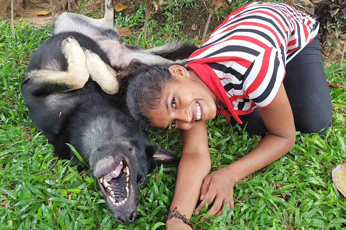 Zwar genießt Sodi die ungeteilte Aufmerksamkeit der Hunde, jedoch heißt das nicht, dass sich Sodi ihrerseits nur auf die Hunde fixiert. Mit den anderen Kindern kommt sie sehr gut zurecht. Bisher habe ich es noch nicht erlebt, dass Sodi in irgendeine Art von Streitigkeiten verwickelt war. Sie verbringt ihre freie Zeit oft zusammen mit den älteren Mädchen des Heims und bezieht dort eher eine zurückhaltende und gleichzeitig lustige Position. Vor allem mit Dinesha und Sewandi sitzt sie gerne in irgendeiner Ecke des Gartens und dort wird dann schon auch mal der neuste Klatsch und Tratsch ausgetauscht oder darüber diskutiert, welcher Schauspieler einer neuen Serie nun der Hübschere ist. Denn trotz ihres Alters beginnt unsere Sodi schon langsam, sich für das andere Geschlecht zu interessieren.